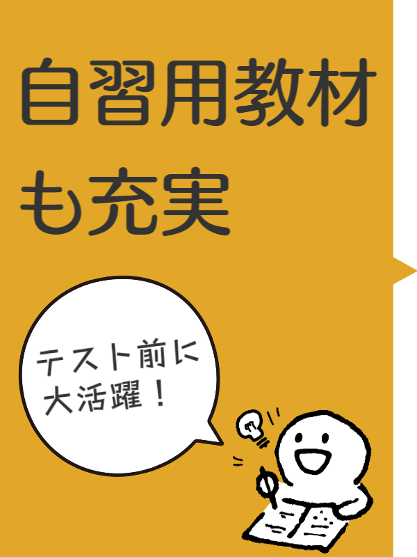 通常授業の他に、苦手科目の克服補習、定期テスト対策授業、定期テスト勉強会等を行っておりますが、これらに追加料金は一切かかりません。授業が難しい、学校の授業で分からない箇所がある、数学(英語)の学力を上げたいなど、どんなことでもご相談ください。分かるまで、できるまでのめんどうみのよさがトップの基本姿勢。サポートは万全です。